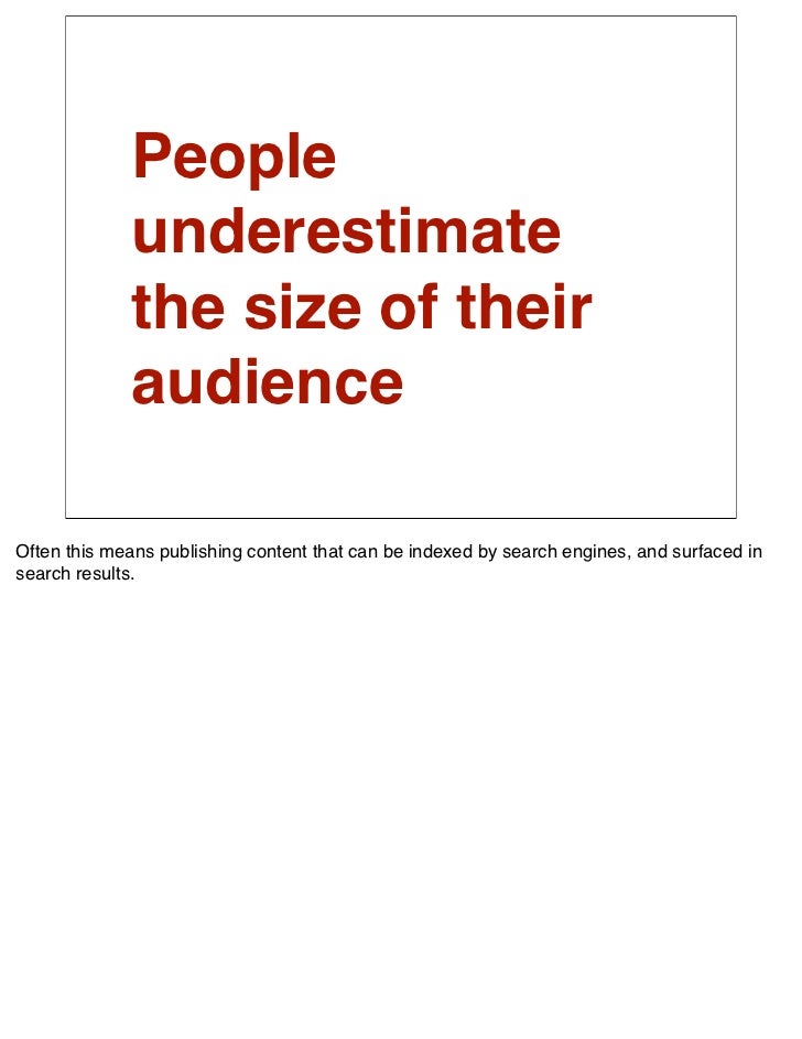 - 194. People underestimate the size of their audience Often this means publishing content that can be indexed by search engines, and surfaced in search results.