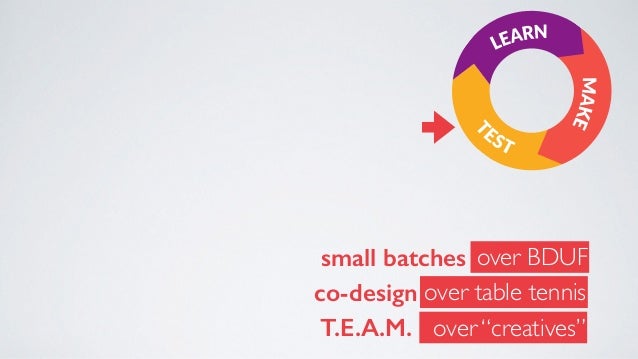 - 39. over BDUF small batches co-design T.E.A.M. over “creatives” over table tennis