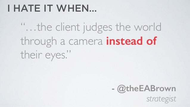 - 75. “…the client judges the world through a camera instead of their eyes.” ! ! - @theEABrown strategist I HATE IT WHEN…