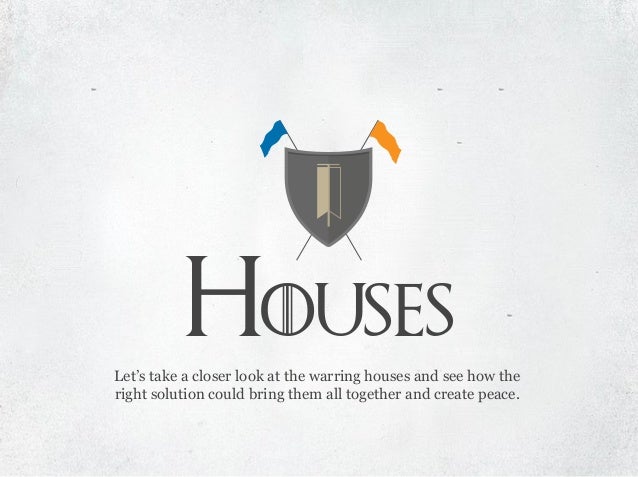 - 6. HOUSES Let’s take a closer look at the warring houses and see how the right solution could bring them all together and create peace.